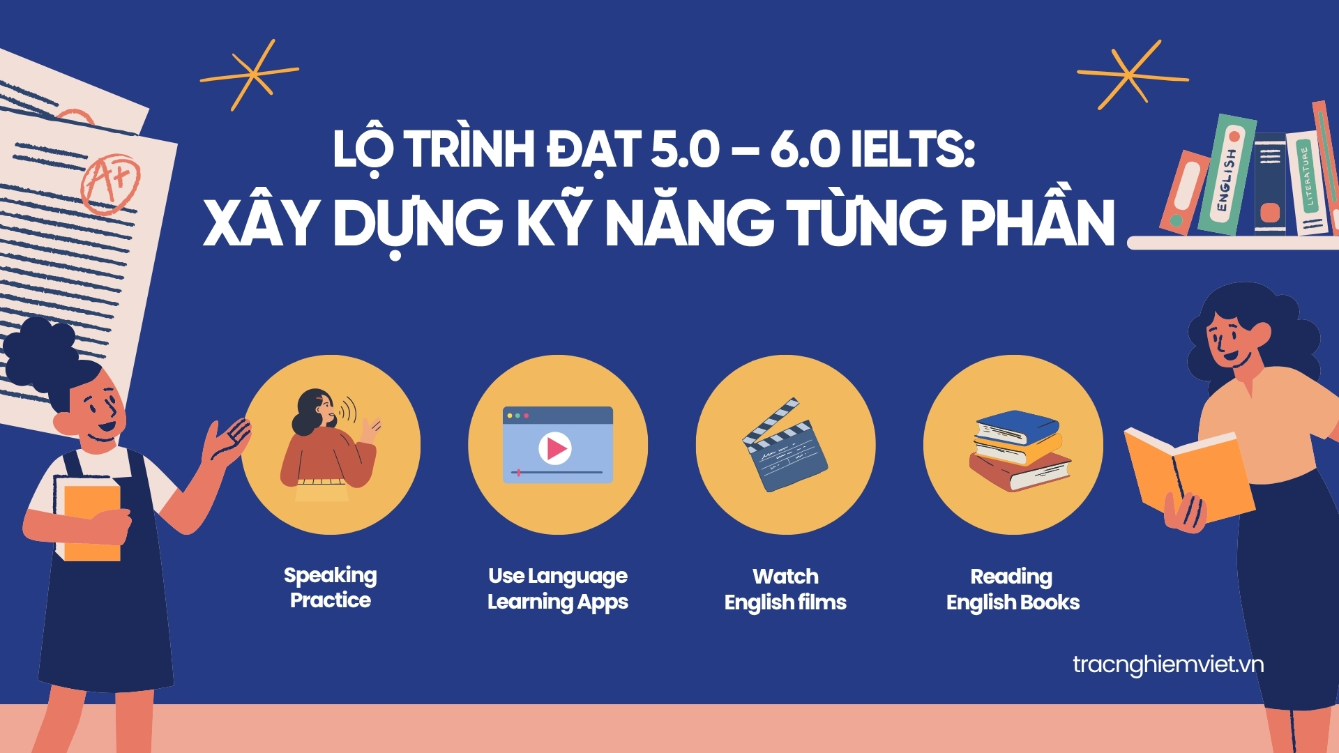 👉 Sau 6–9 tháng chăm chỉ, người học có thể đạt khoảng 5.5 – 6.0 IELTS.